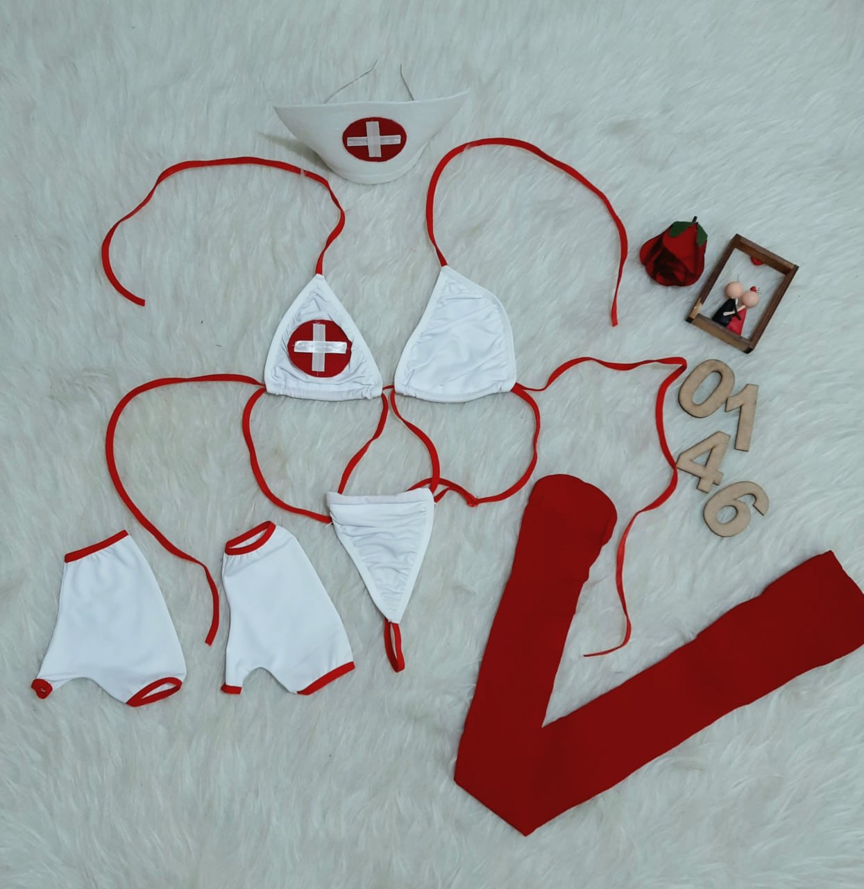 کاستوم پرستاری4 تکه(بادی و جوراب ساده و دستکش و تل)سایز فری 36 تا 44