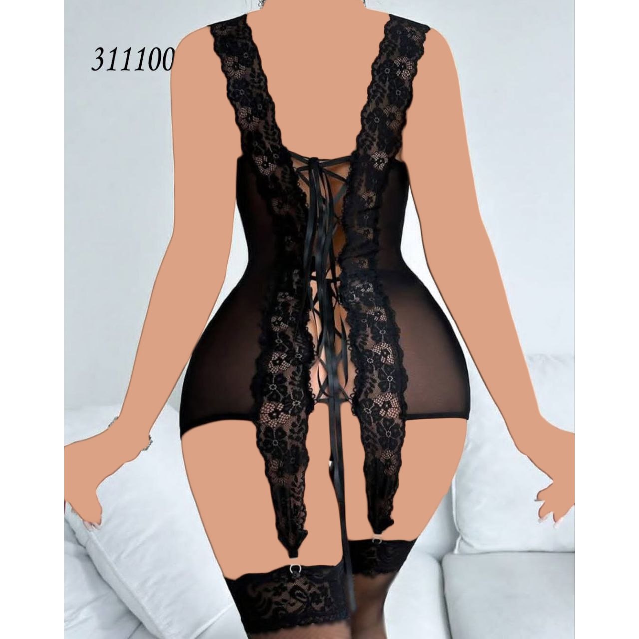 لباس خواب پشت بندی3 تکه(با شورت و جوراب)سایز فری 36 تا 42