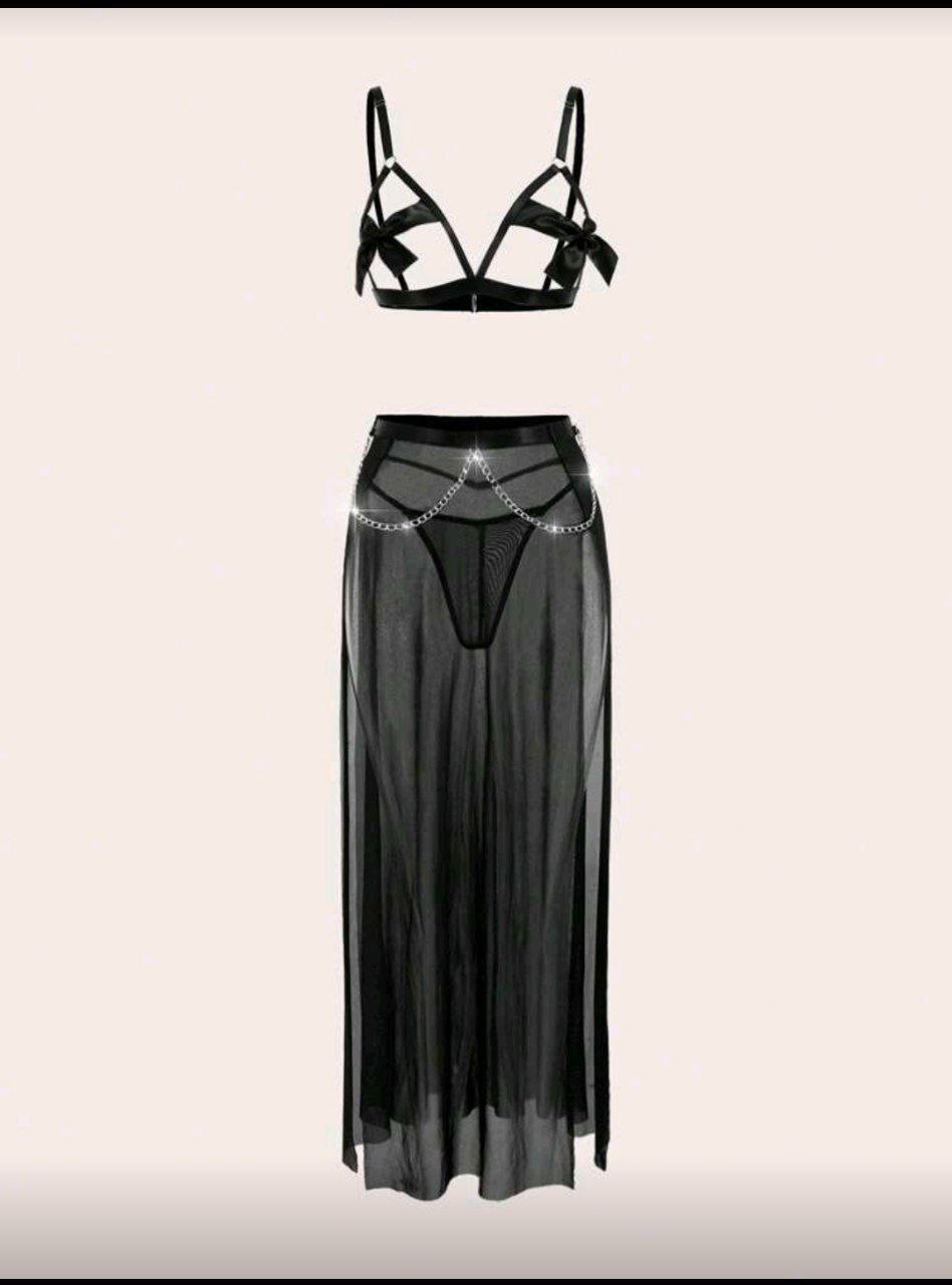 ست فانتزی زنجیردار سوتین دامن بلند شورت❤️سایز لارج مناسب ۳۶/۴۰ سایز ایکس لارج مناسب ۴۲/۴۴