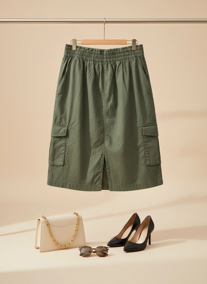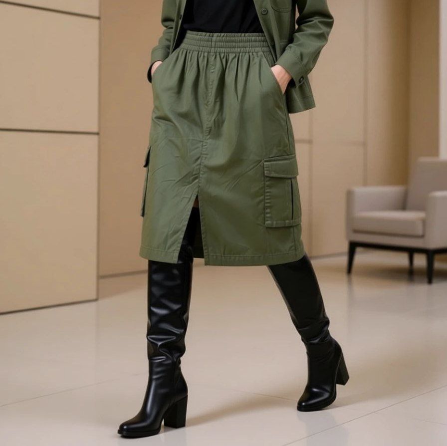 دامن کارگو کتان وارداتی✔️قد ۷۰ سانت ✔️سایز فری ۳۶ تا ۵۲