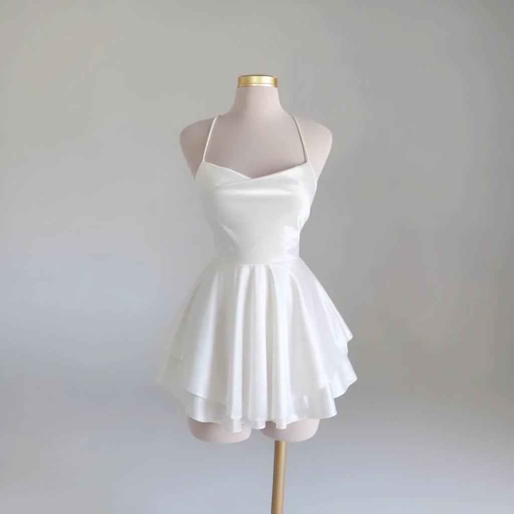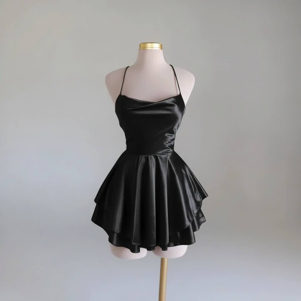 پیراهن ساتن عروسکی پشت بندی🥰💎سایز فری 36 تا 42💎قد از قسمت دکلته 70cm💎در 8 رنگ ✨مشکی✨سفید شیری✨بژ✨قرمز✨آبی آسمونی✨سرخابی✨زرشکی✨کالباسیکد 038قیمت 820