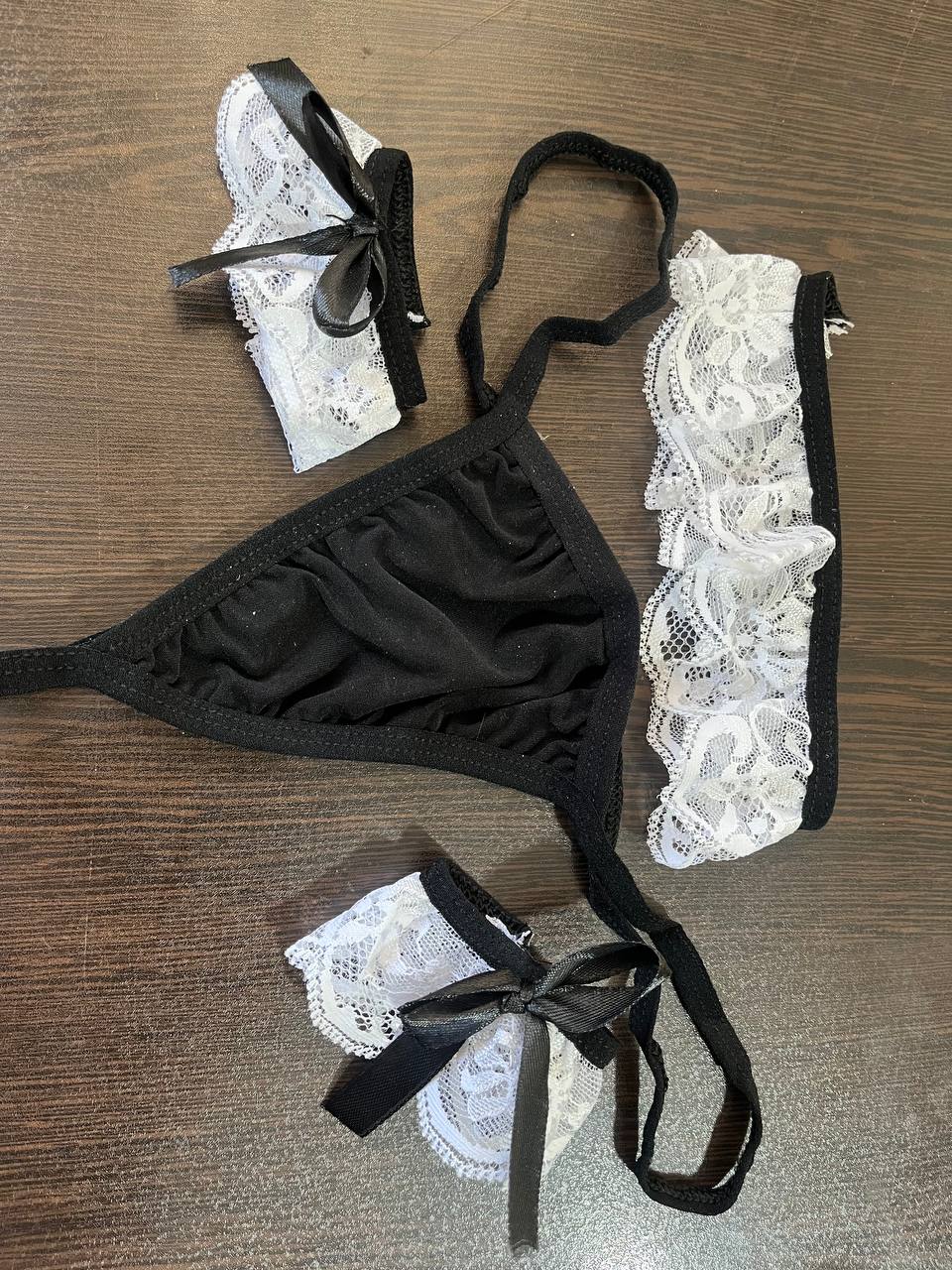 کاستوم خدمتکاری🥰 همراه با شورت / مچبند/ گردنبند🥰 سایز لارج مناسب 36تا40 سایز ايکس لارج مناسب 42 تا 44 🥰