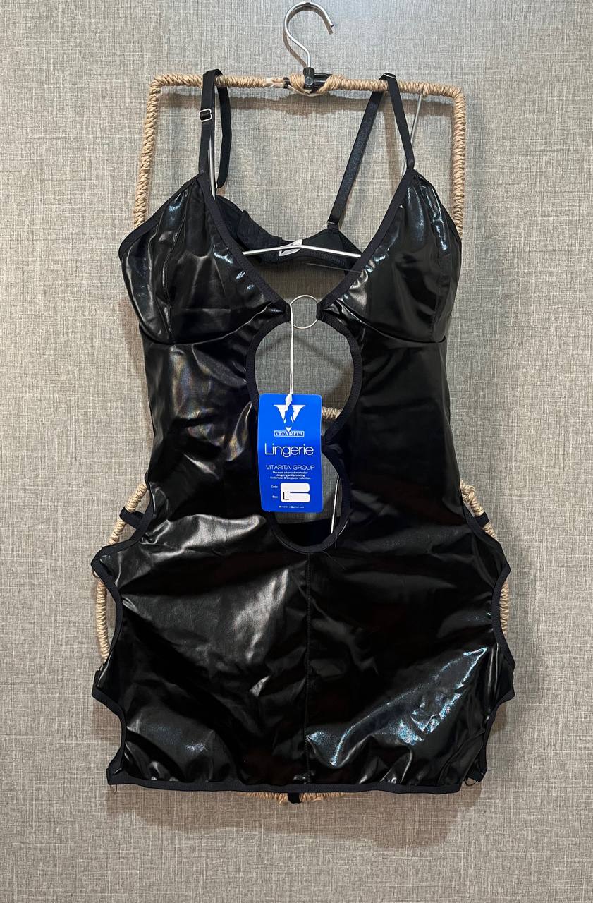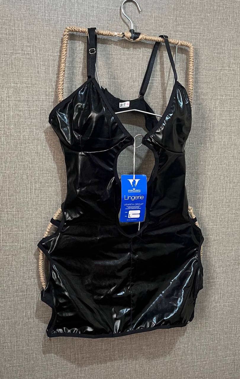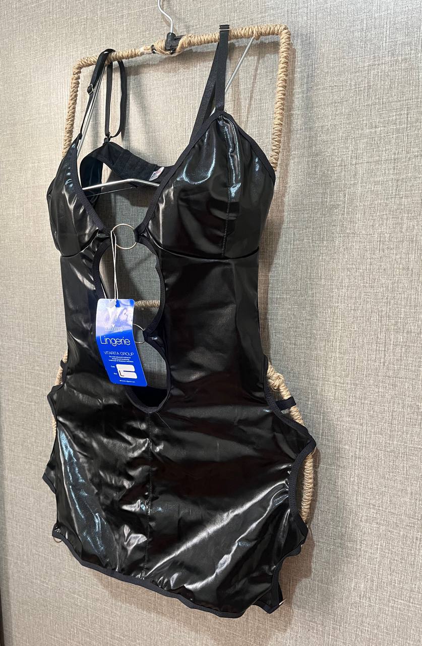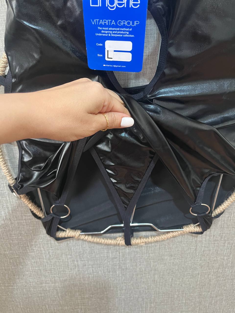 لباسخواب چرمی حلقه دار بند سرشانه قابل تنظیم پشت کمر بند سوتینی. همراه با شورت لامبادا سایز لارج مناسب 36تا40 سایز ايکس لارج مناسب 42 تا 44