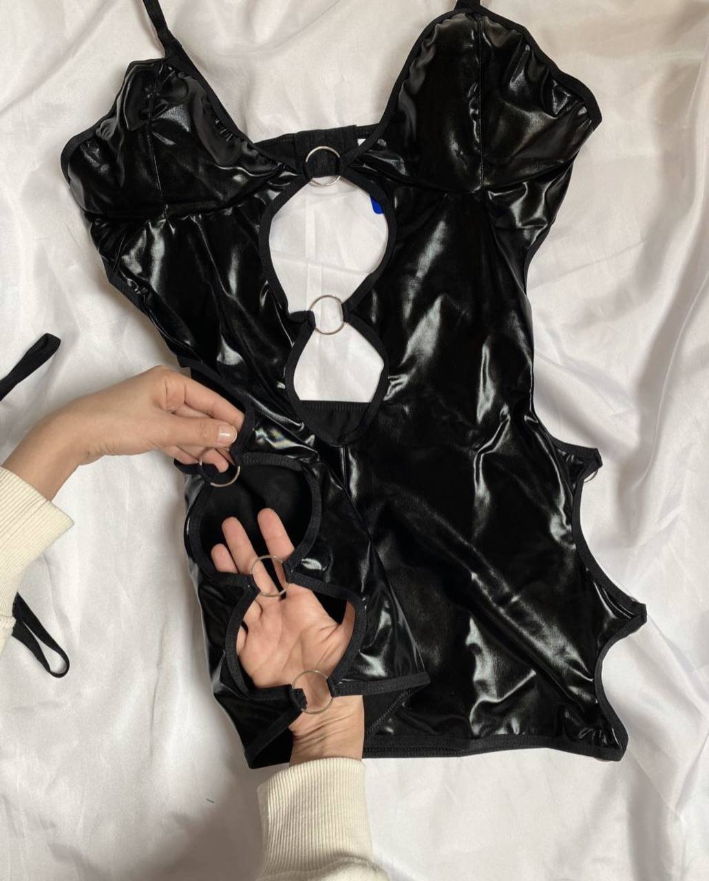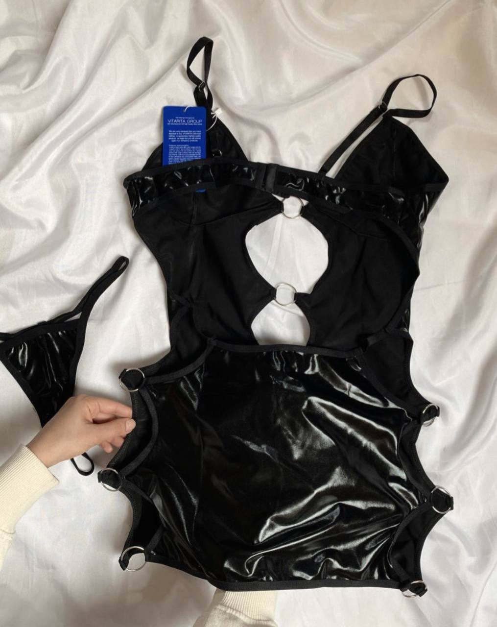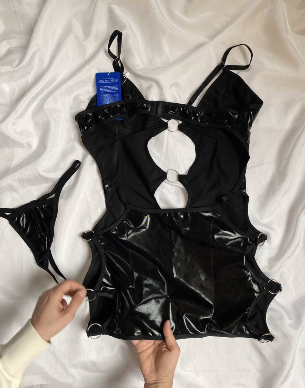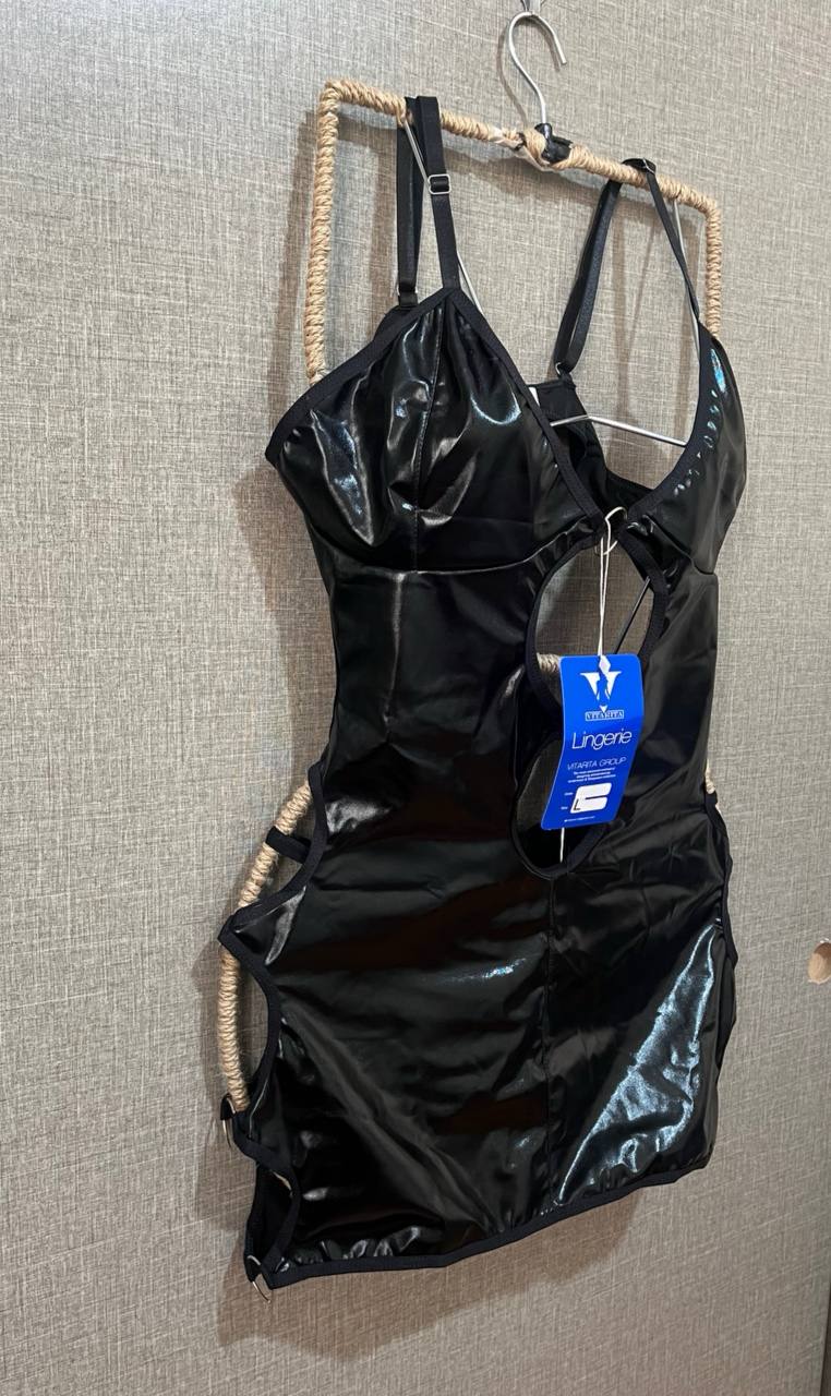 لباسخواب چرمی حلقه دار بند سرشانه قابل تنظیم پشت کمر بند سوتینی. همراه با شورت لامبادا سایز لارج مناسب 36تا40 سایز ايکس لارج مناسب 42 تا 44