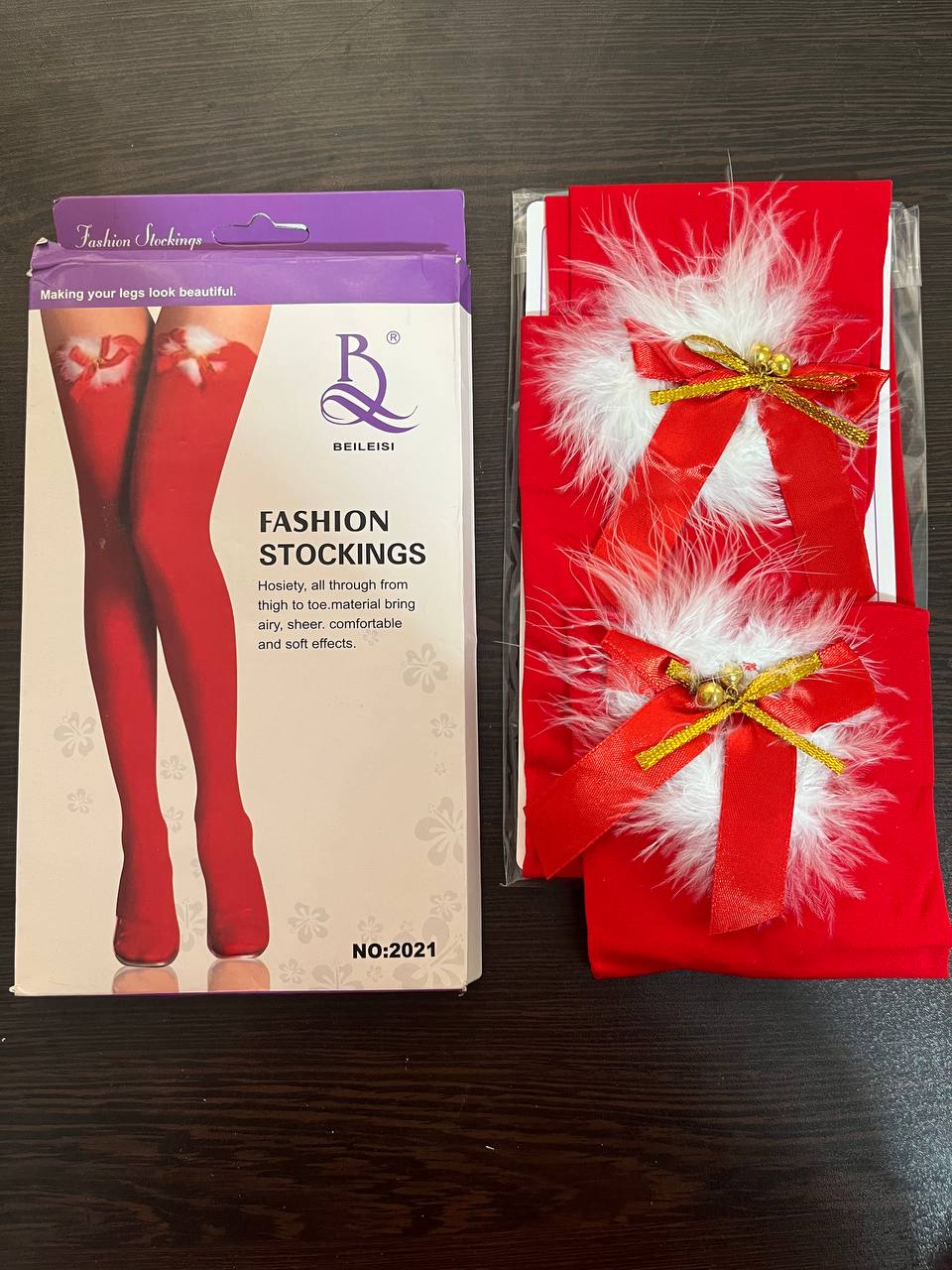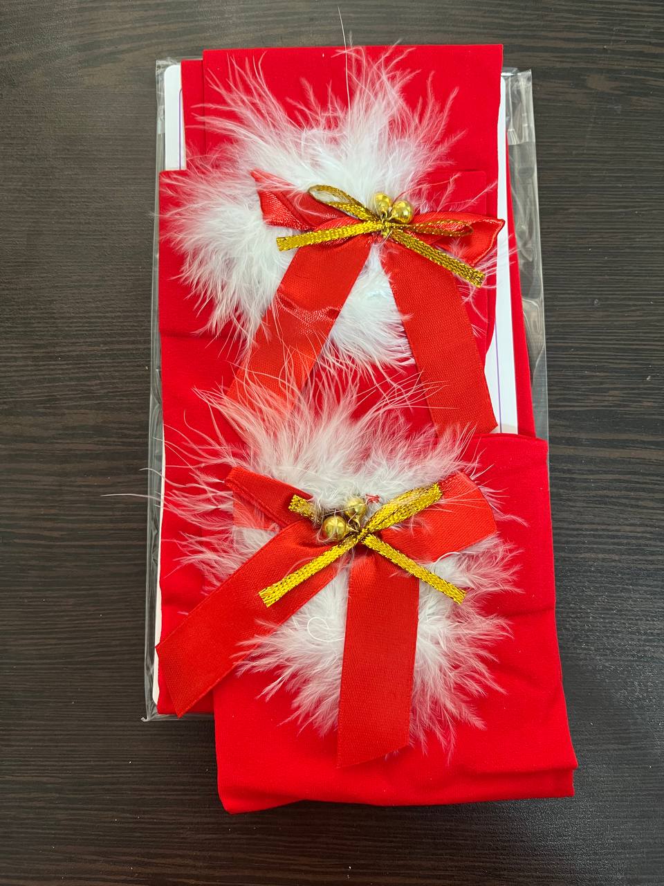 جوراب کریسمسی زنگوله دار🎅🎄🎁بالازانو پاپیون و خزدار ضخیم فری سایز