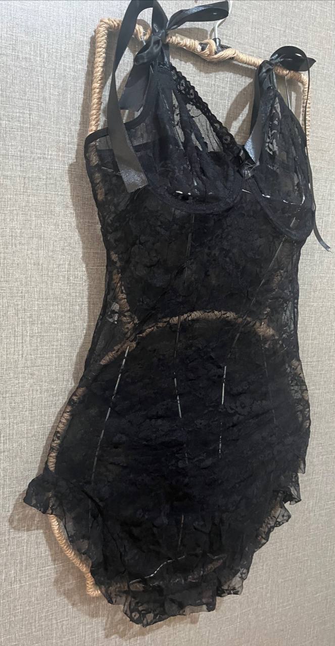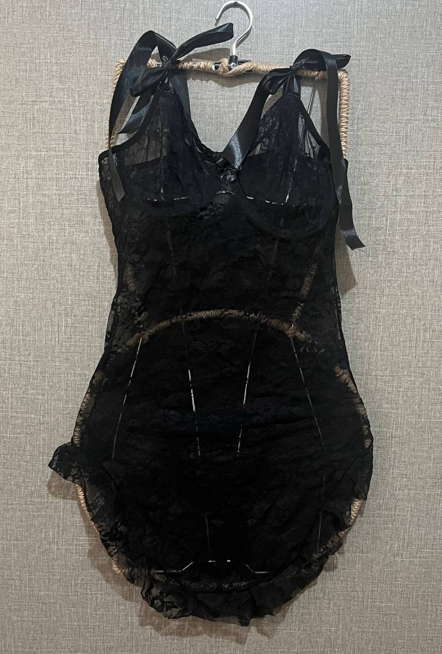 لباسخواب فانتزی فنردار همراه با شورت بند سرشانه ساتن پاپیونی بسته میشه سایز لارج مناسب 36تا40 سایز ايکس لارج مناسب 42 تا 44