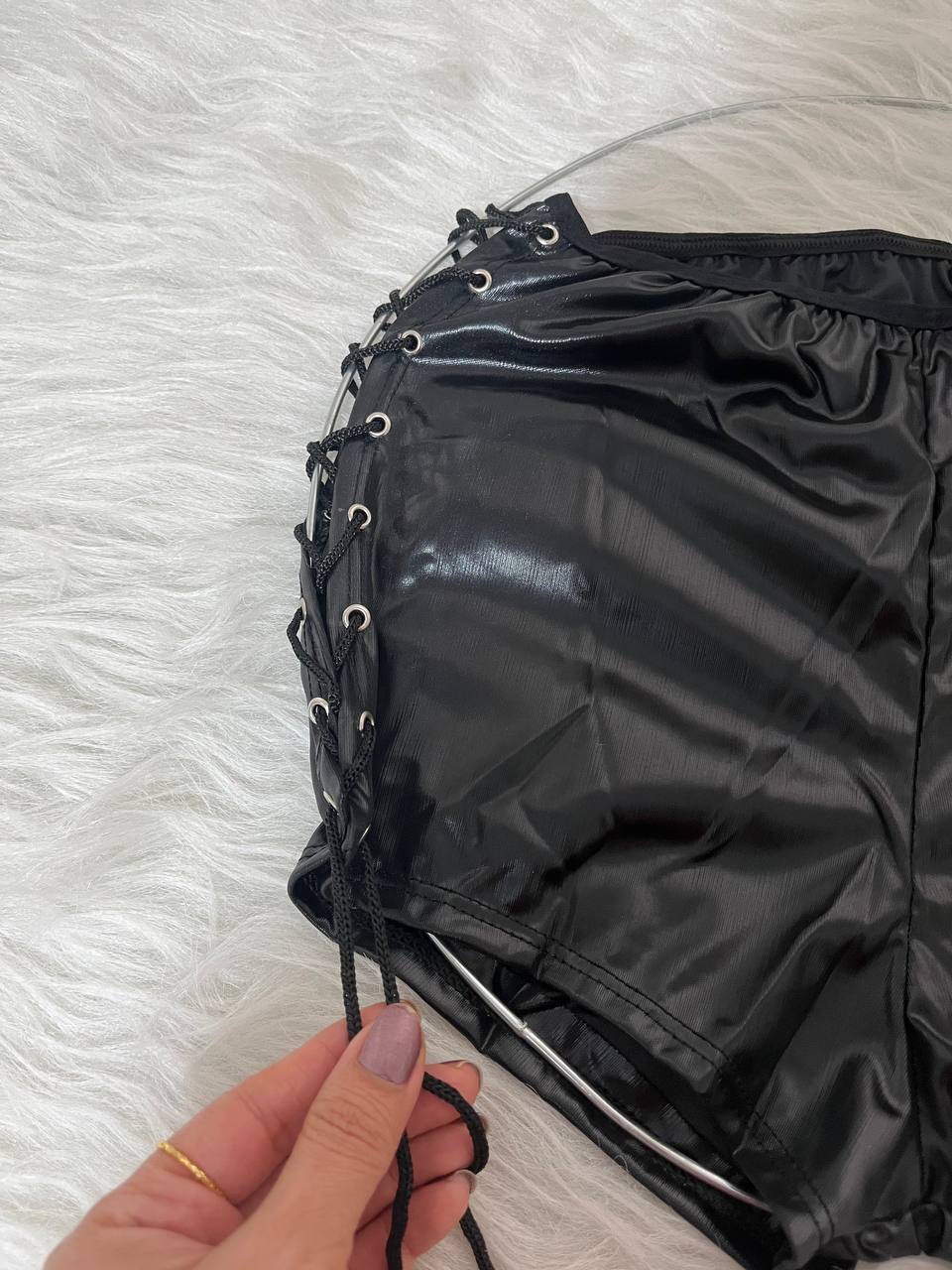 شورت فانتزی چرمی زنانه بغل بندی فری سایز 36 تا 42 میخوره