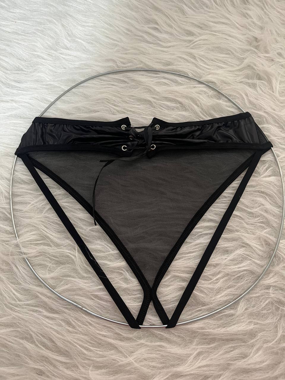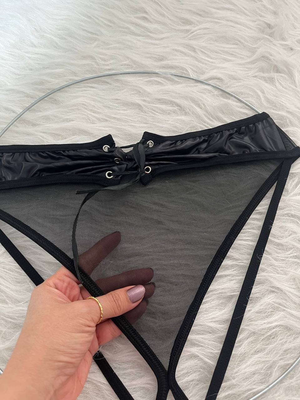شورت توری پشت باز پشت چرمی بنددار فری سایز 36 تا 40 میخوره