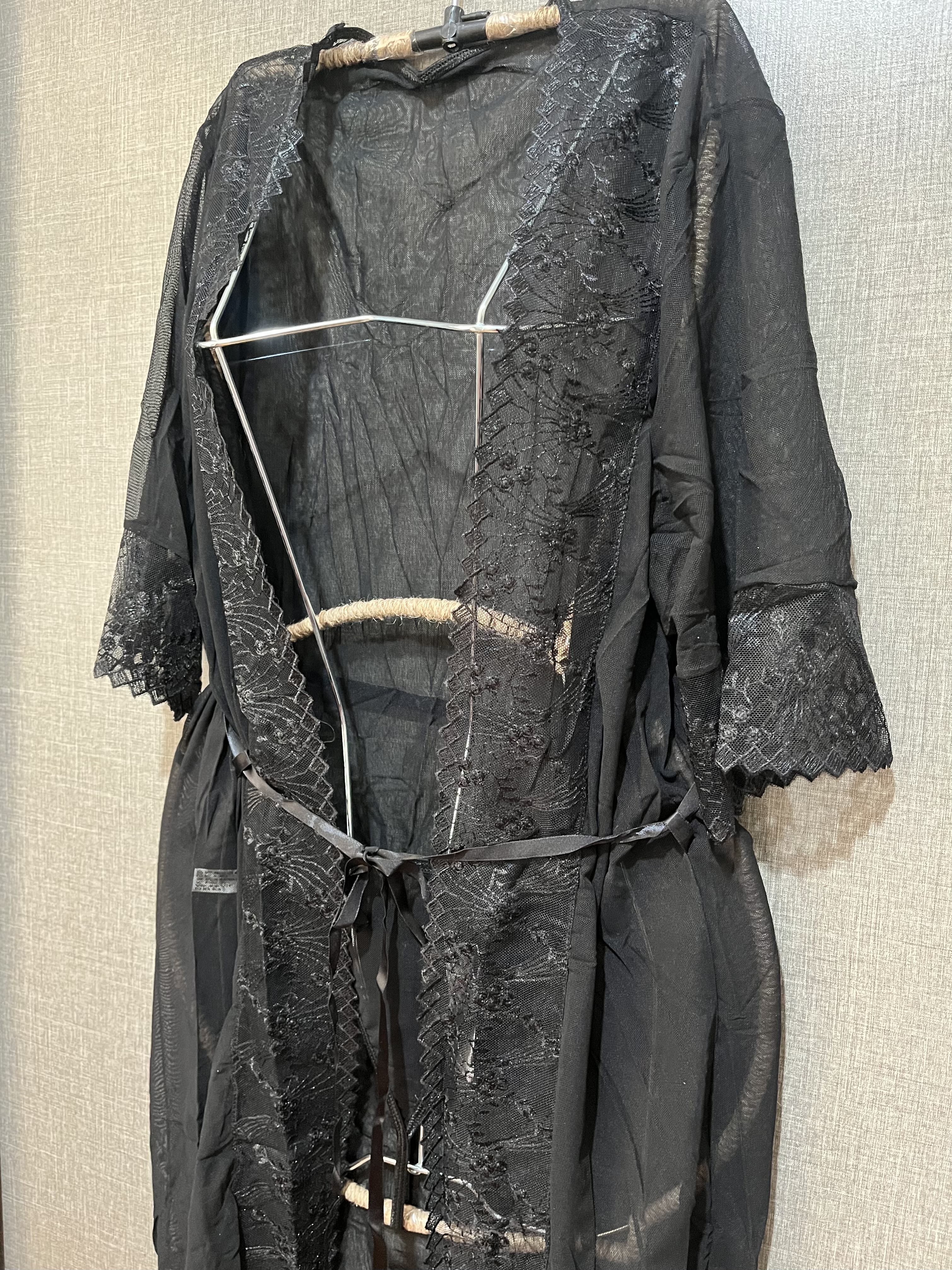 ربدوشامبر حریربدن نما با لبه تور دانتل همراه با شورت حریر لامبادا و کمربند سایز لارج مناسب ۳۶/۴۰ سایز ایکس لارج مناسب ۴۲/۴۴
