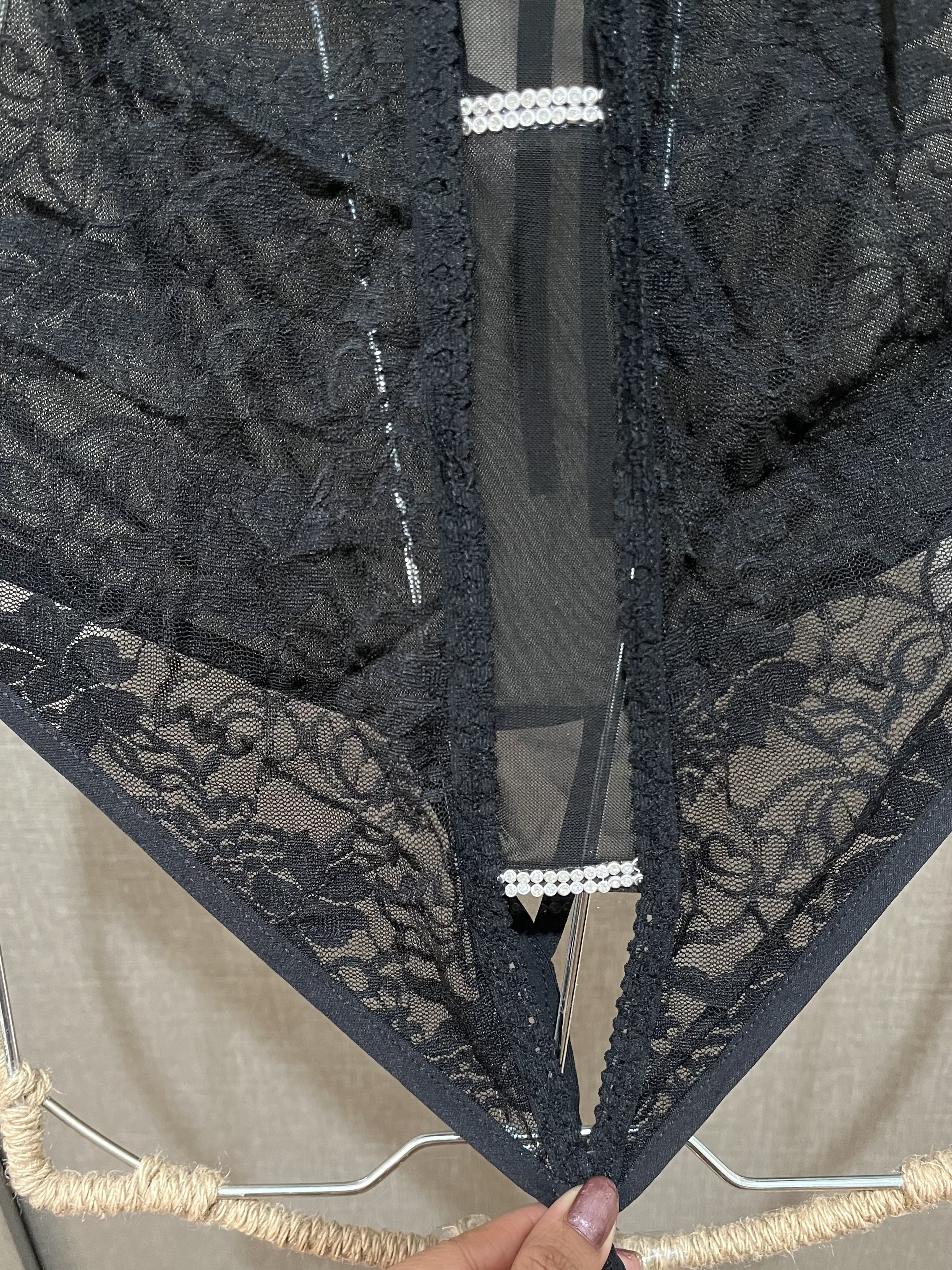 بادی سرهمی حریر دانتل فاق باز و بندی سایز بزرگ سایز ۴۲ تا ۴۶ میخوره