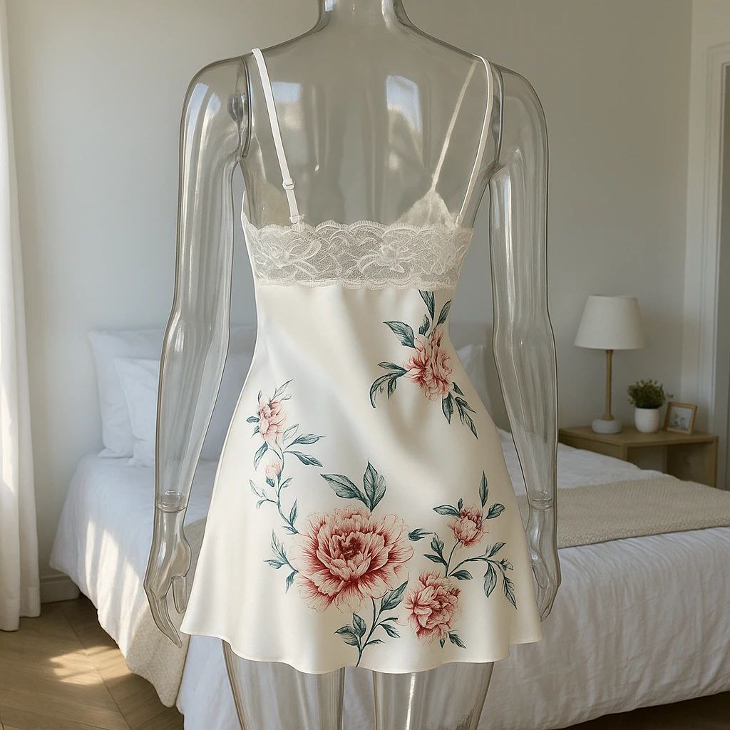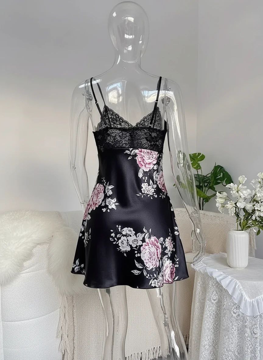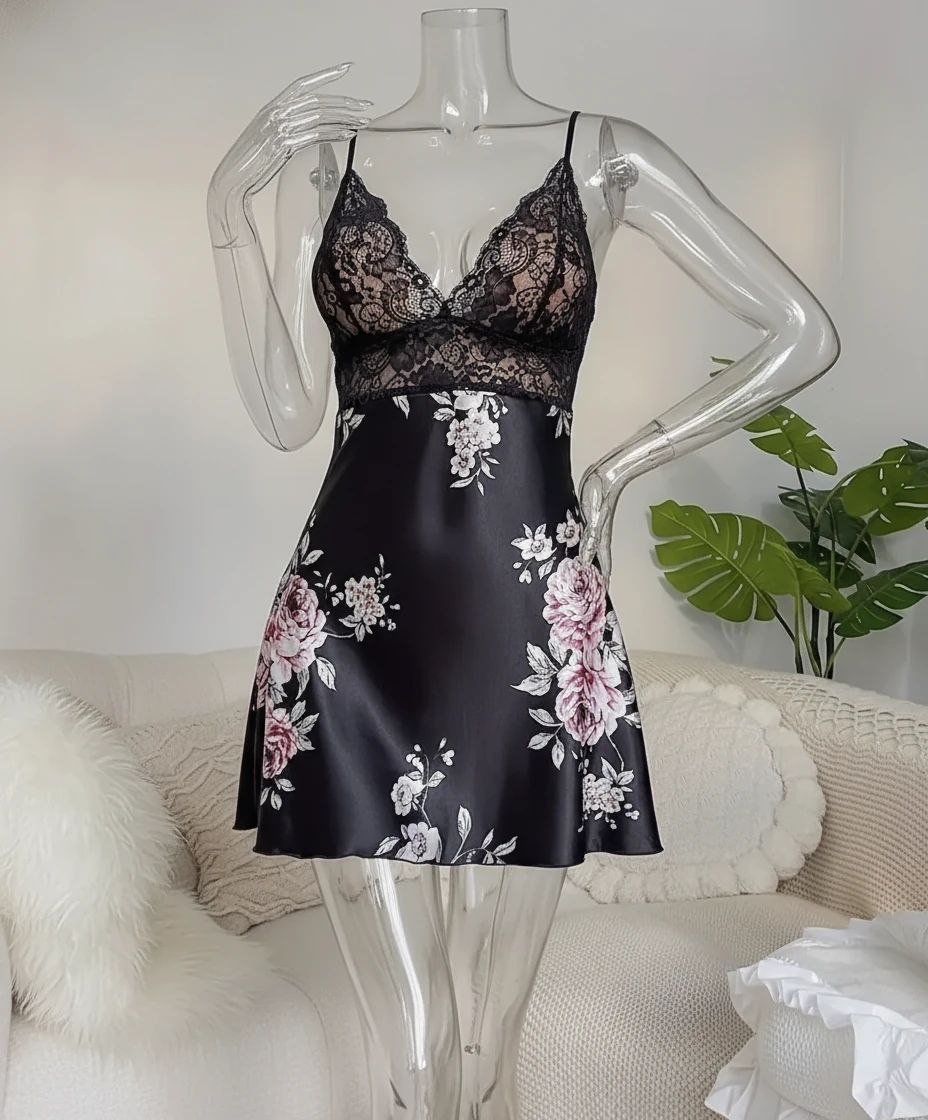 لباسخواب ساتن گلدار 2 تکه (با شو.رت) فری سایز 36 تا 44
