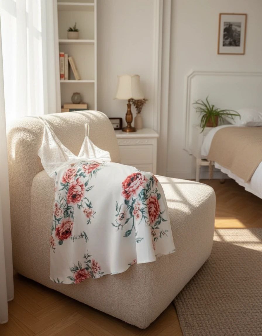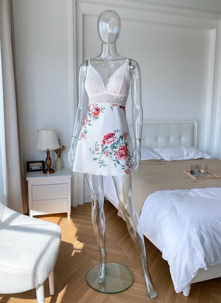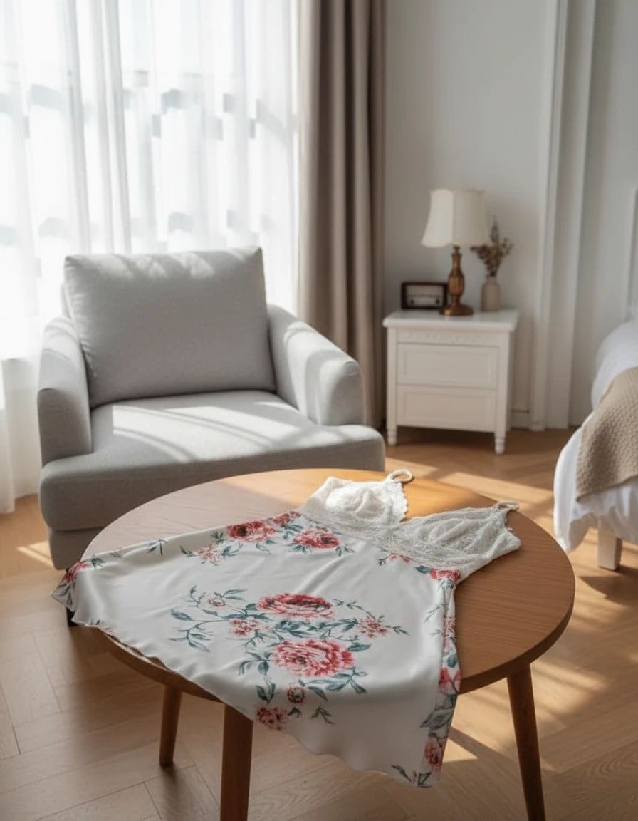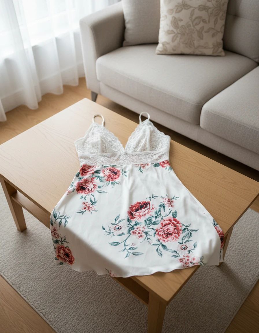 لباسخواب ساتن گلدار 2 تکه (با شو.رت) فری سایز 36 تا 44