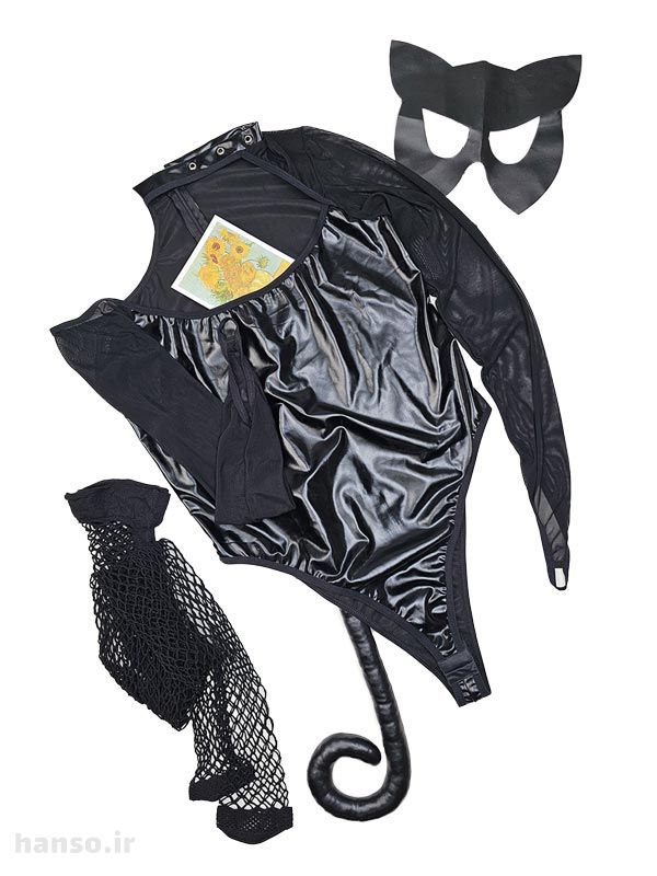کاستوم فانتزی مدل گربه ای۳ تیکه✅بادی چرمی فاق قزندار و پشت زیپ دار✅جورابشلواری زنبوری ✅نقاب چرمی. سایز لارج مناسب کمر 36 تا 40. سایز ايکس لارج مناسب کمر 42 تا 44.