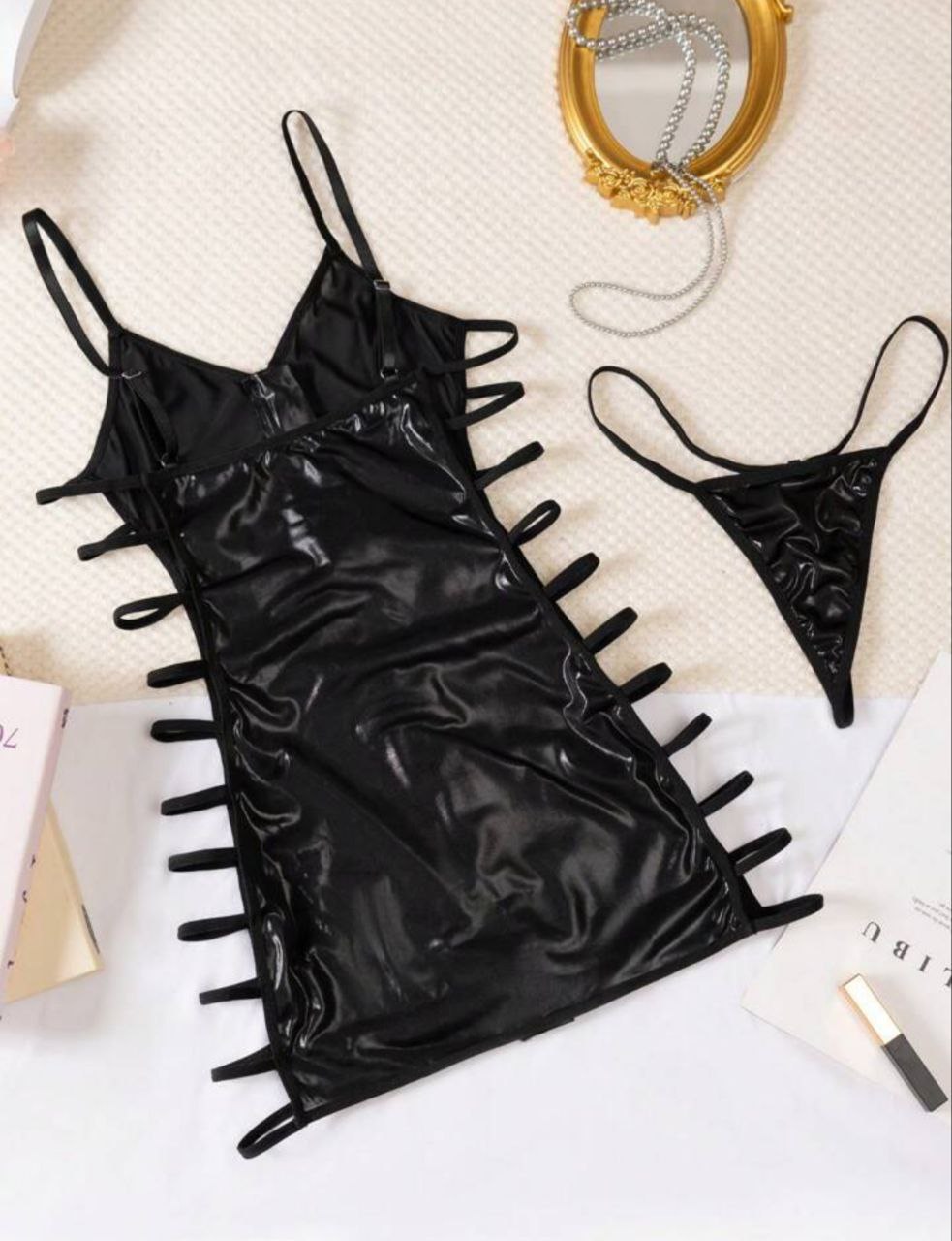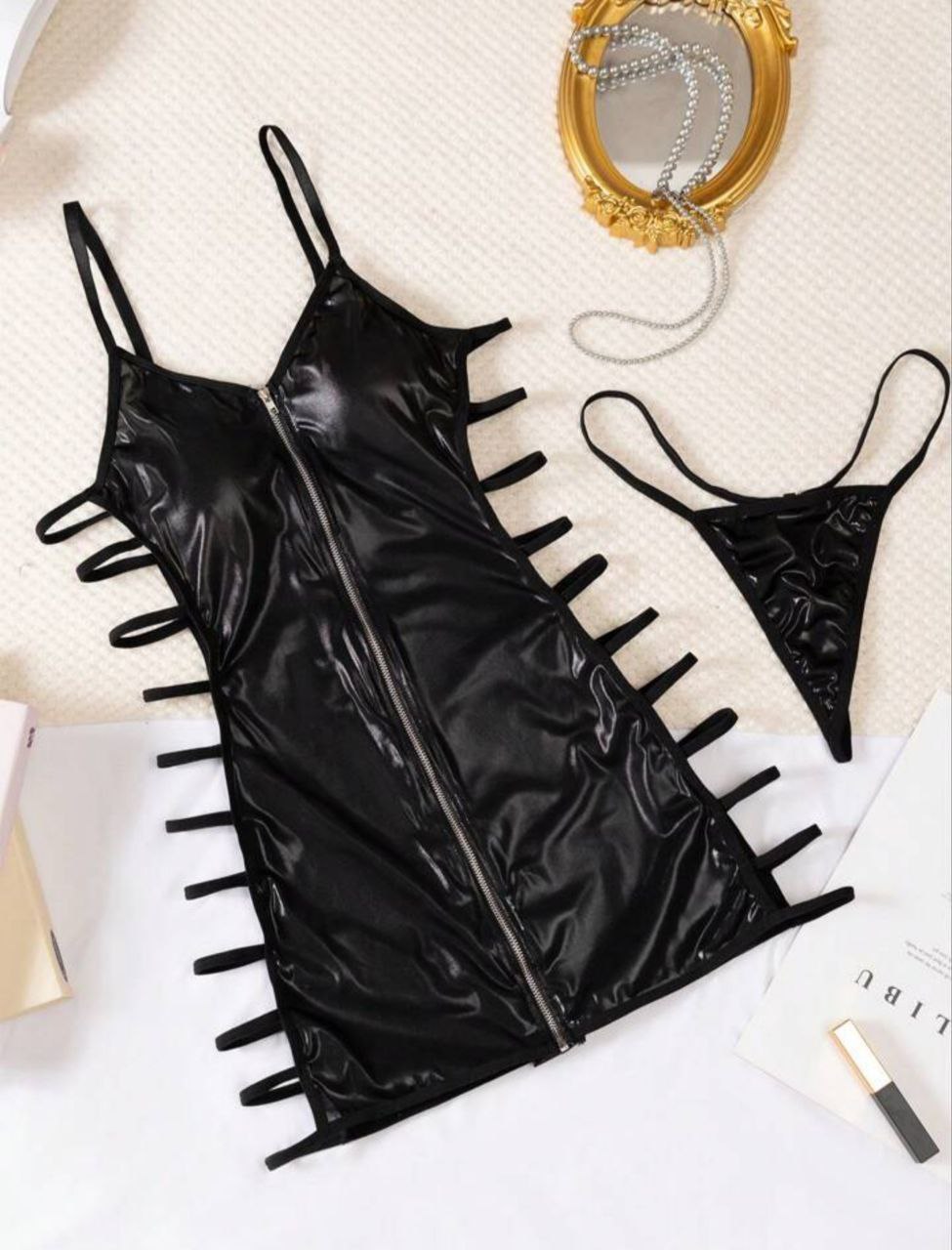 لباسخواب چرمی زیپدار بغل بندی همراه با شورت سایز لارج مناسب 36 تا 40 سایز ايکس لارج مناسب 42 تا 44