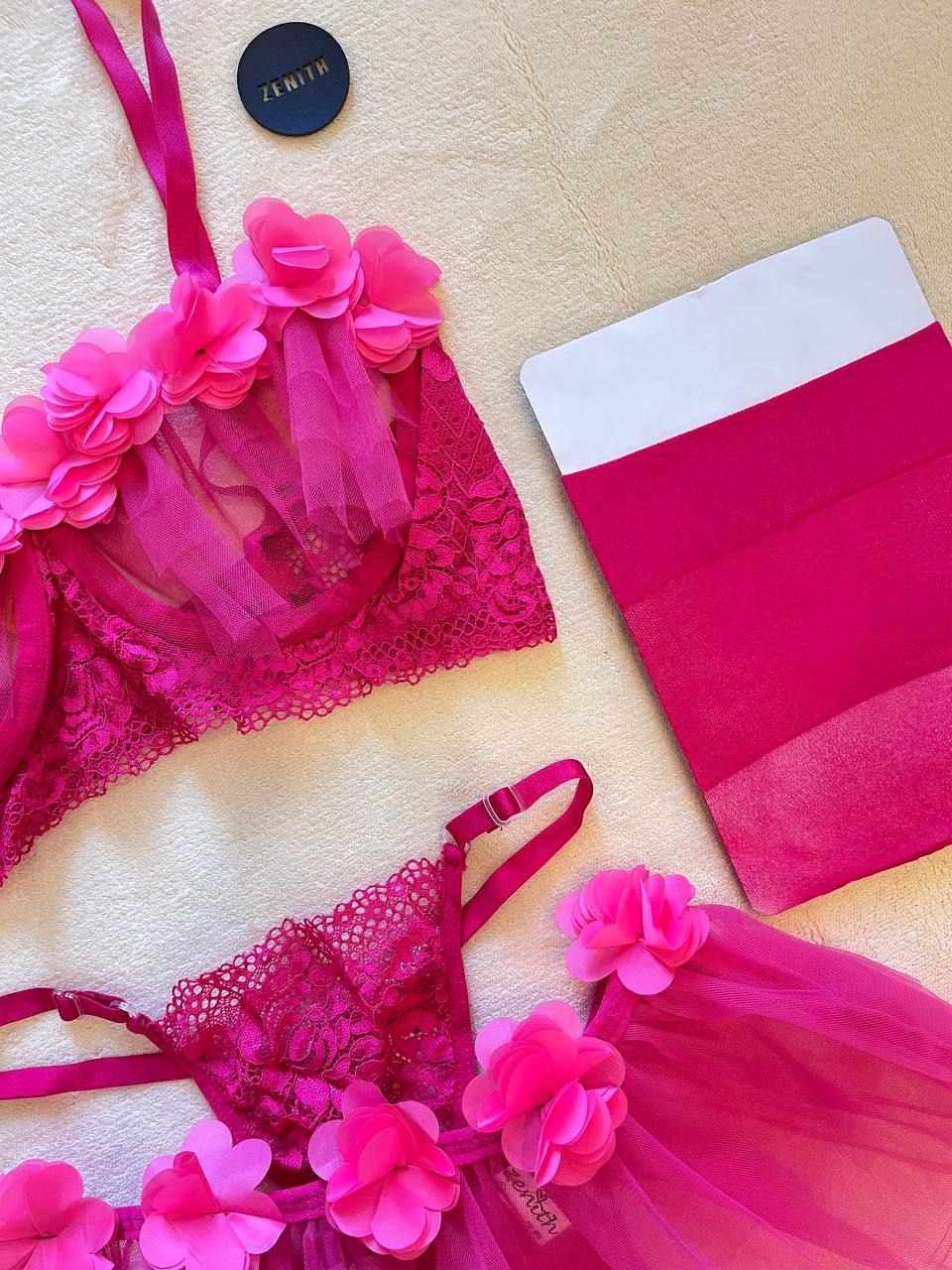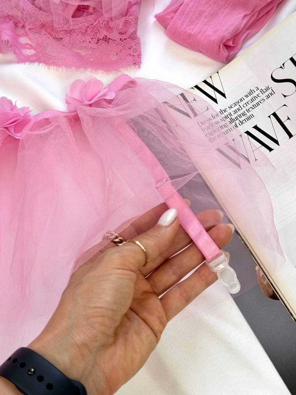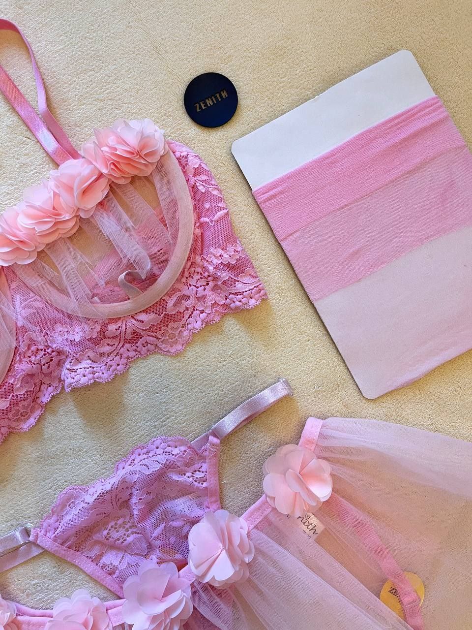 ست فانتزی فنردار همراه با جوراب و شورت چهار تیکه سایز لارج مناسب 36 تا 40 سایز ايکس لارج مناسب 42 و 44. طی دوره های مختلف تولید، طرح دانتل ممکن است کمی متفاوت باشد