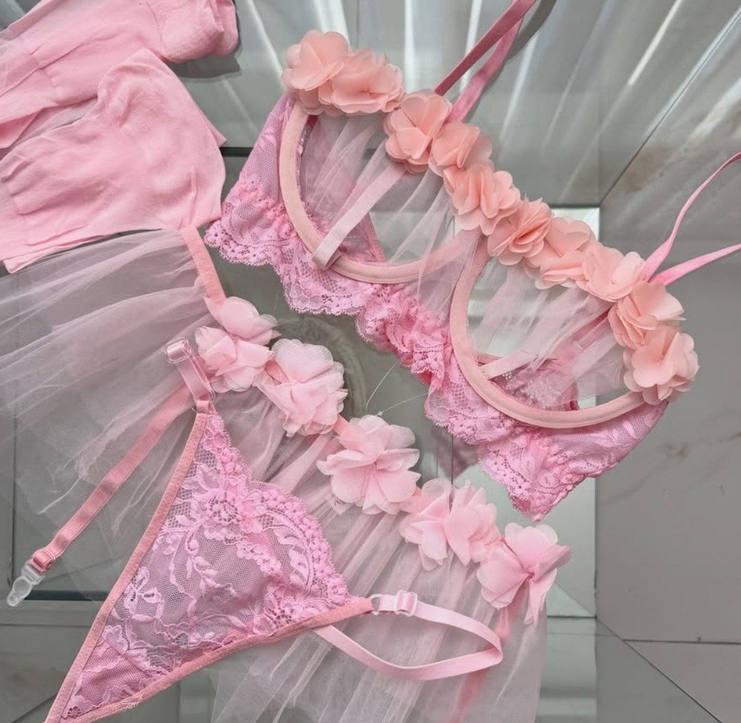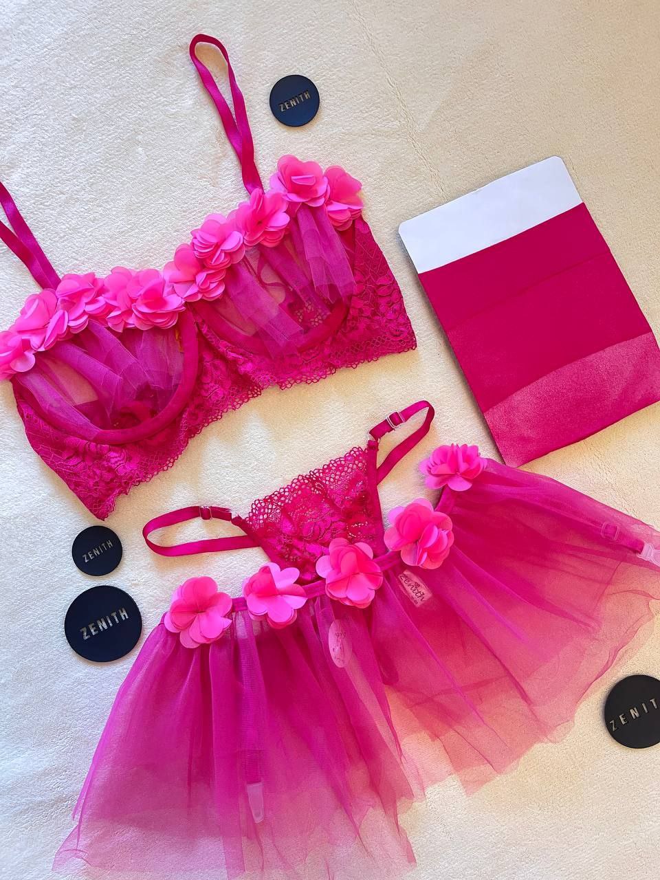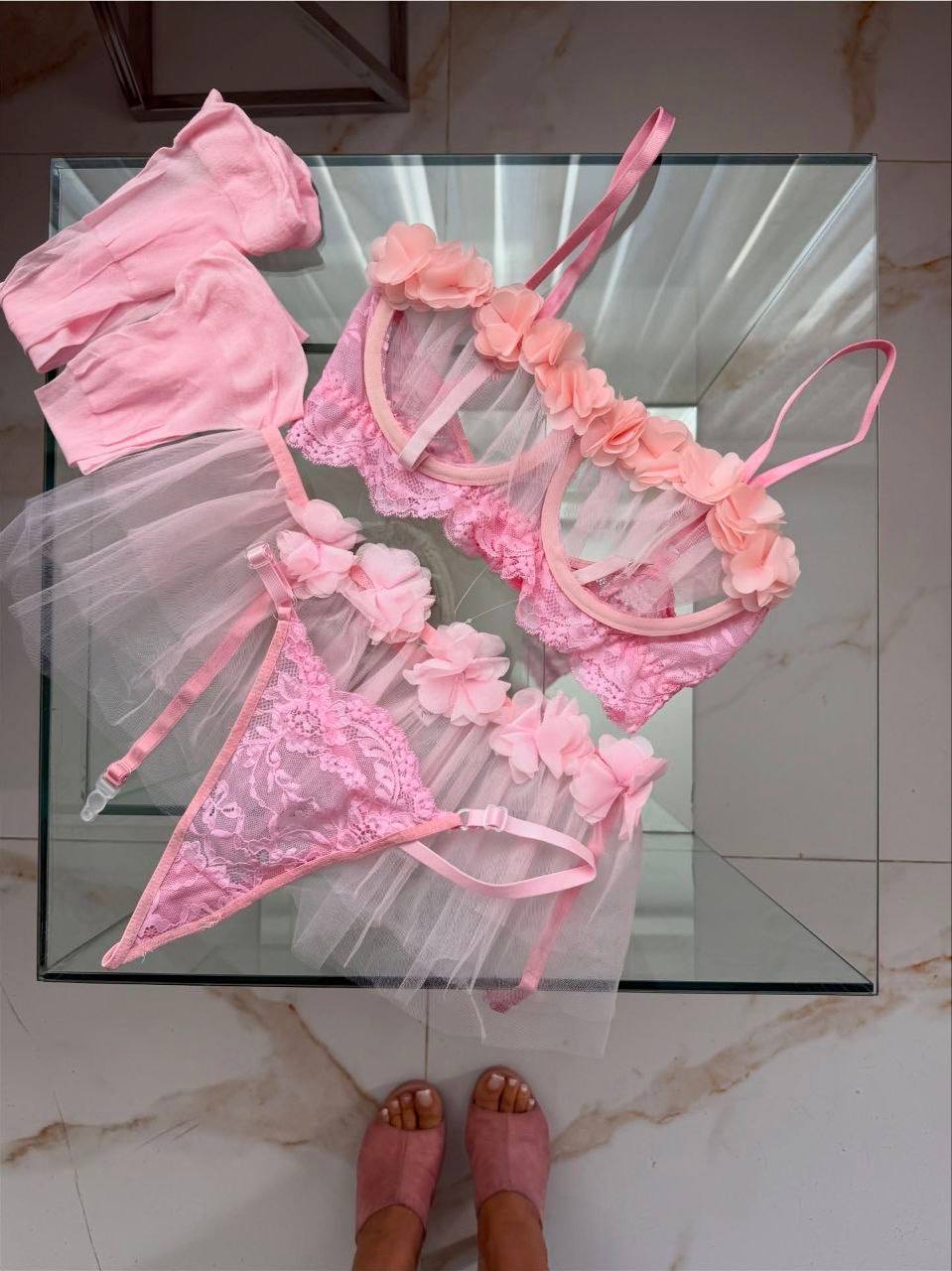 ست فانتزی فنردار همراه با جوراب و شورت چهار تیکه سایز لارج مناسب 36 تا 40 سایز ايکس لارج مناسب 42 و 44. طی دوره های مختلف تولید، طرح دانتل ممکن است کمی متفاوت باشد