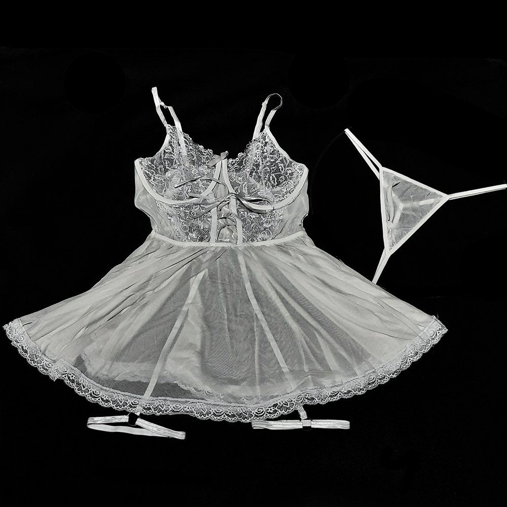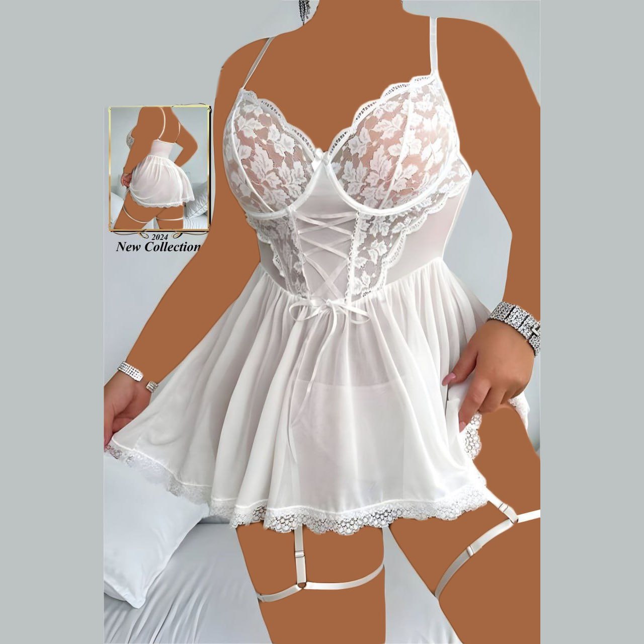 لباسخواب فننردار همراه با شورت و رانبند سایز بزرگ 44/50