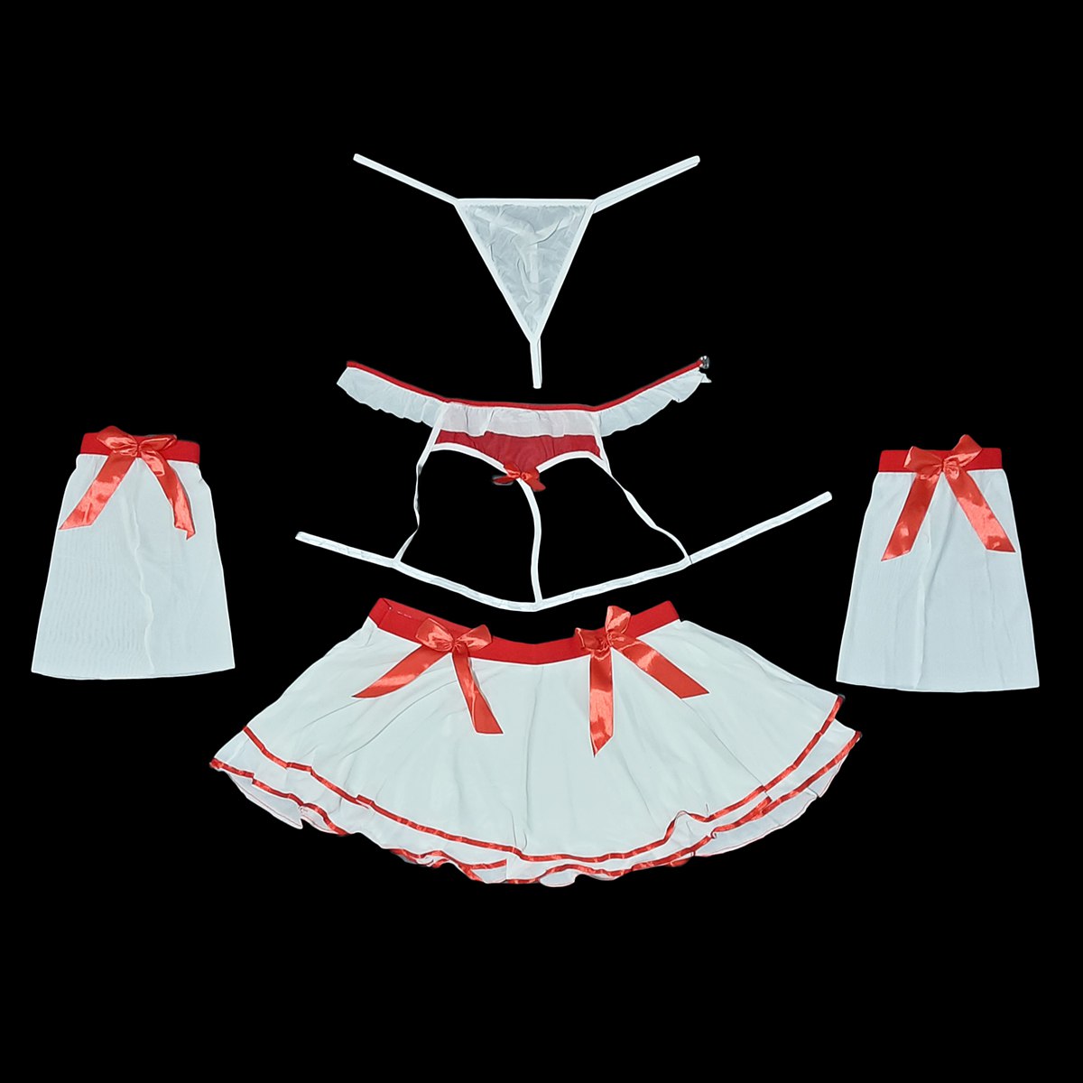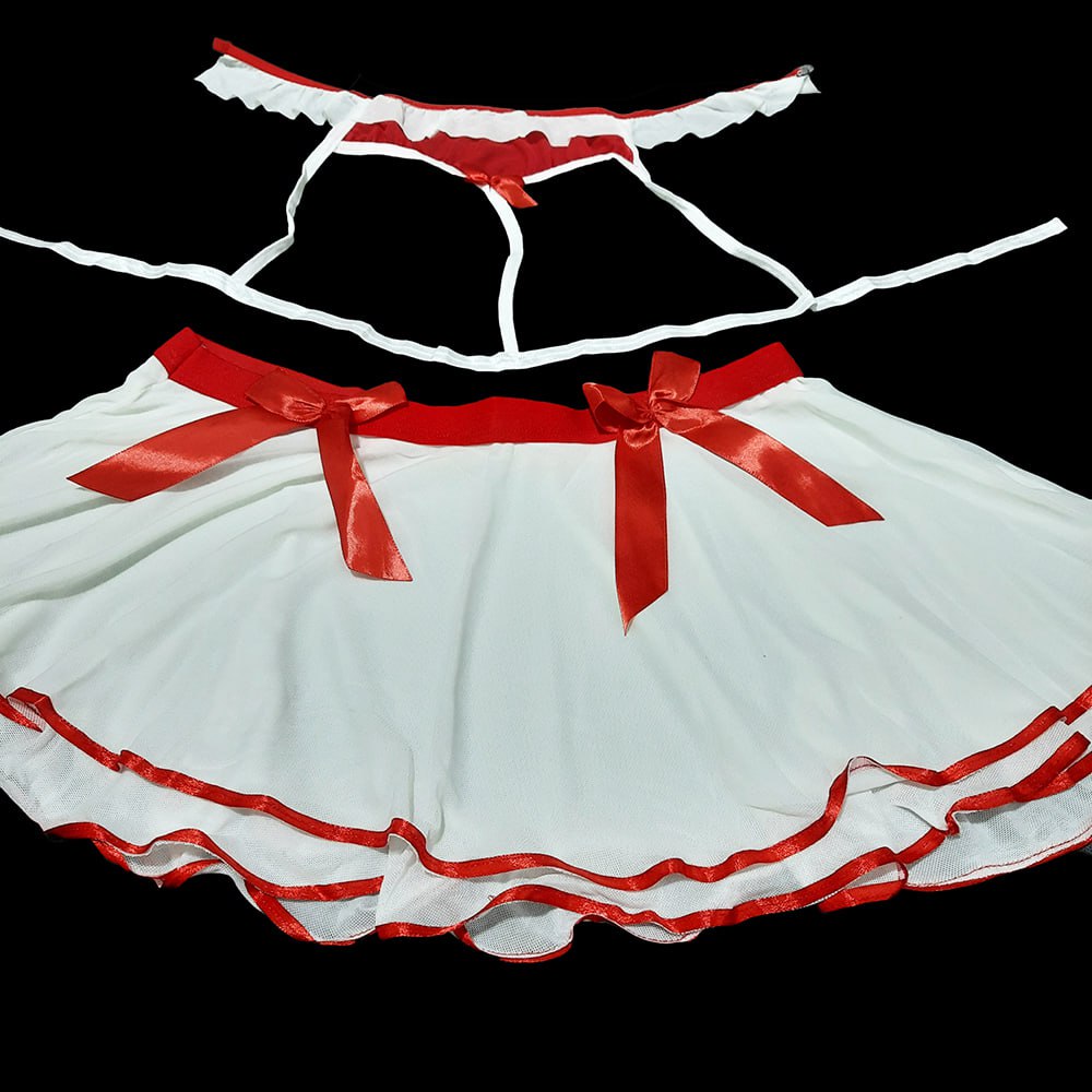 کاستوم پرستار دامنی سینهباز🙈❤️🔥4 تکه(با شورت و بازوبند)💞🌟سایز فری 36 تا 44 اندازه میشه