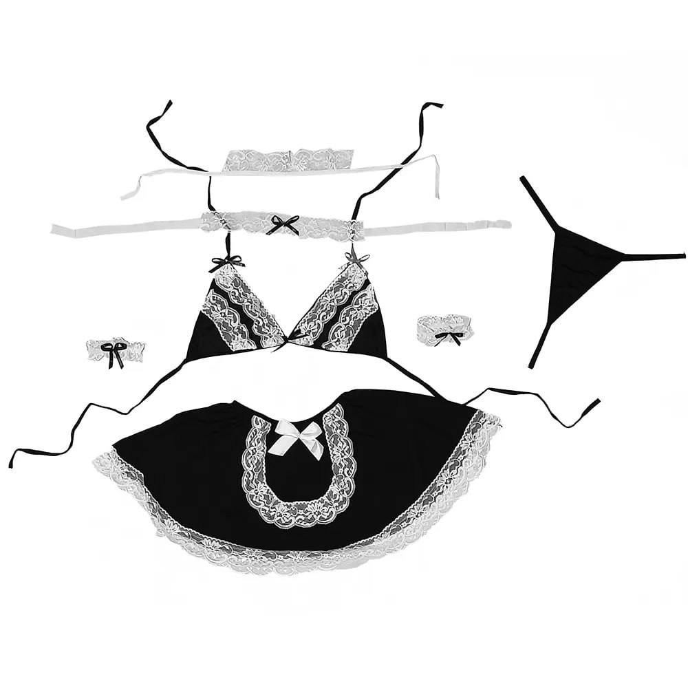 کاستوم خدمتکار6 تکه(سوتین / شورت /تور سر/ گردنبند/ مچبند/ شورت)❤️🔥🤩✨سایز فری 36 تا 42