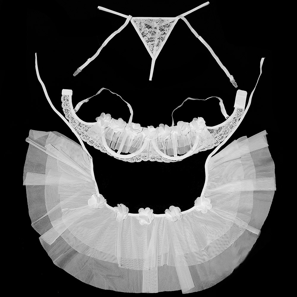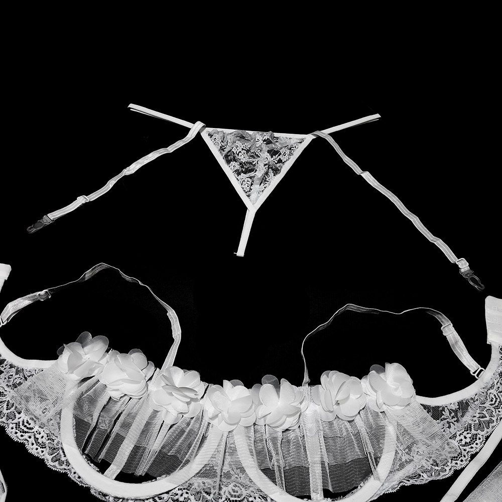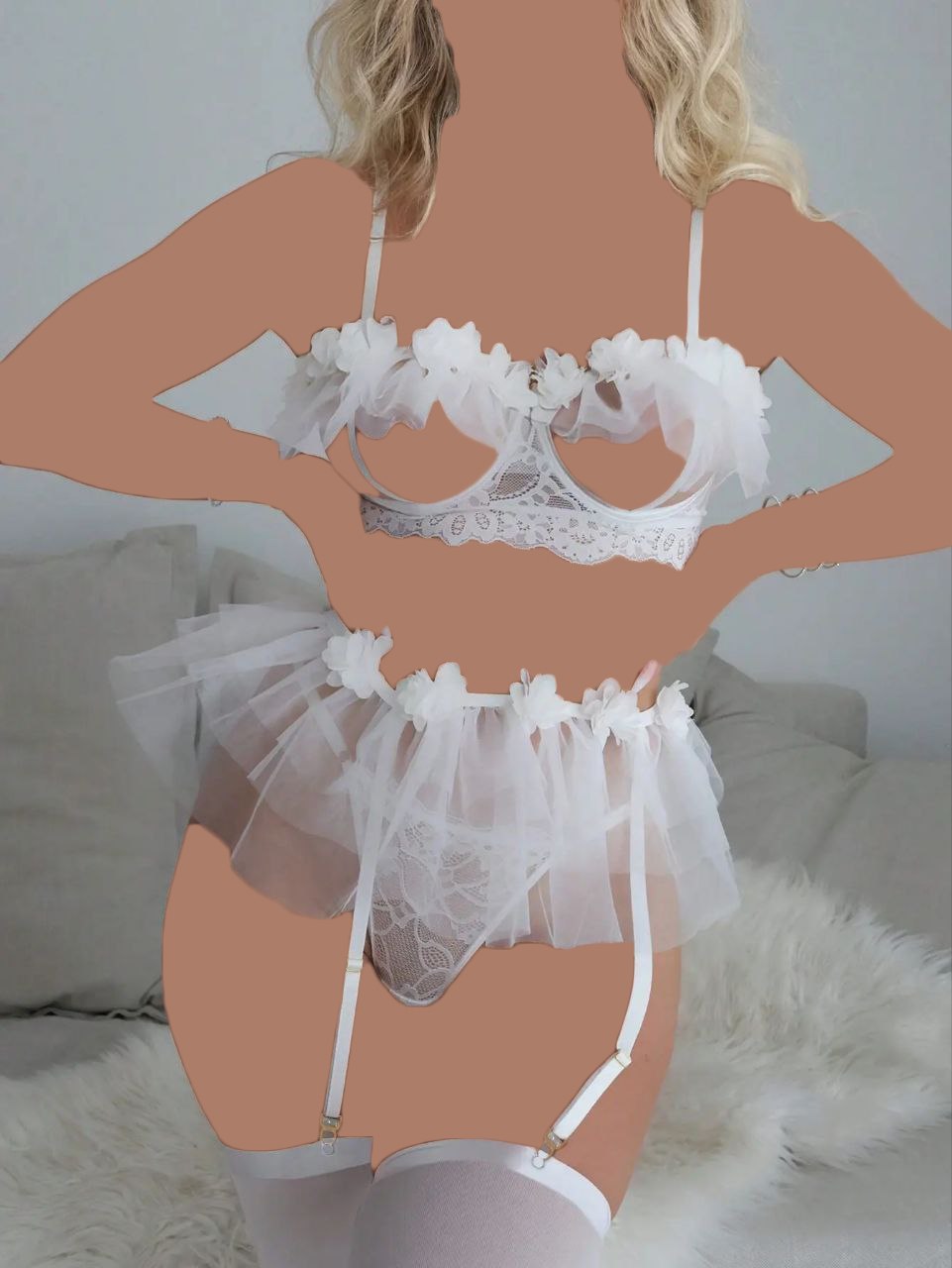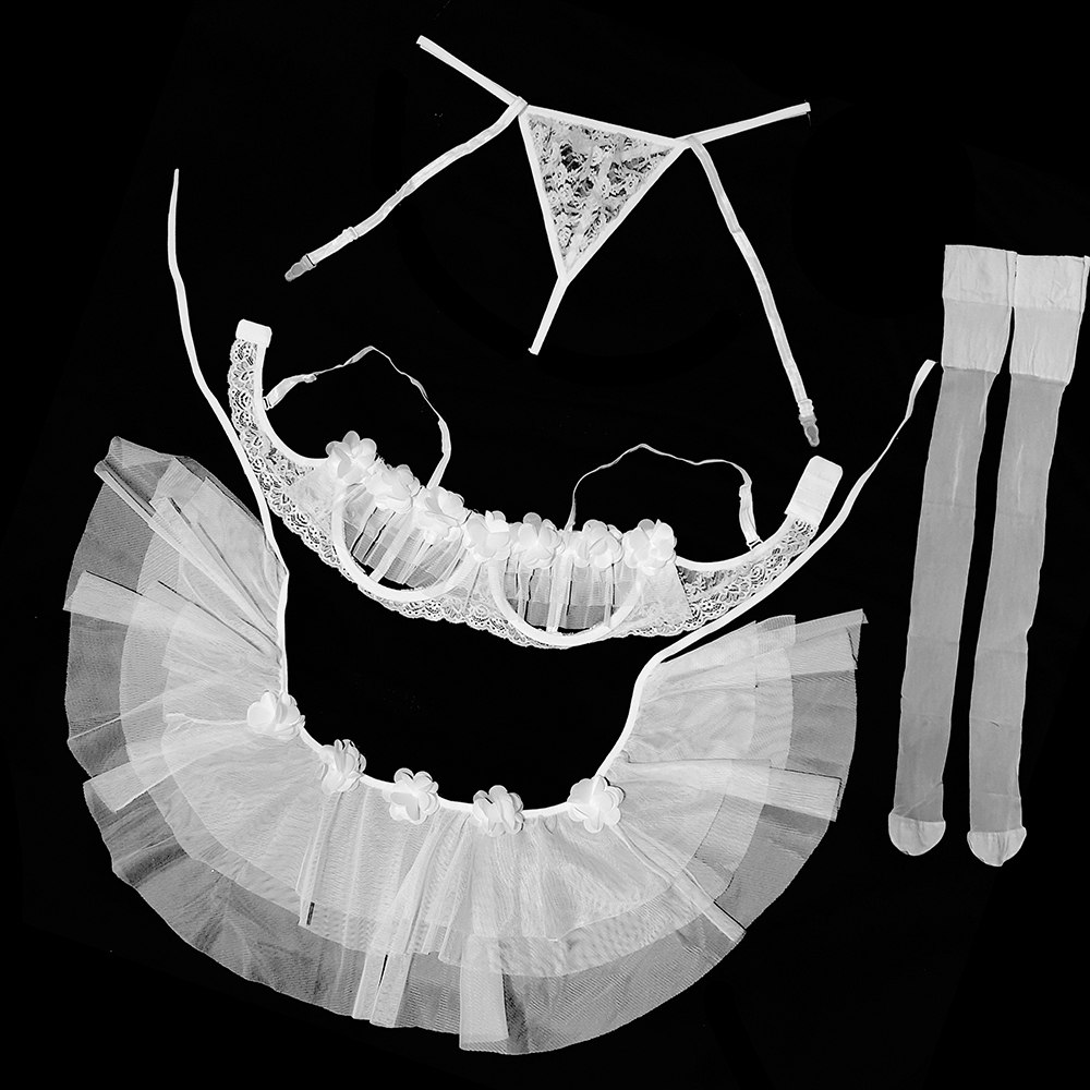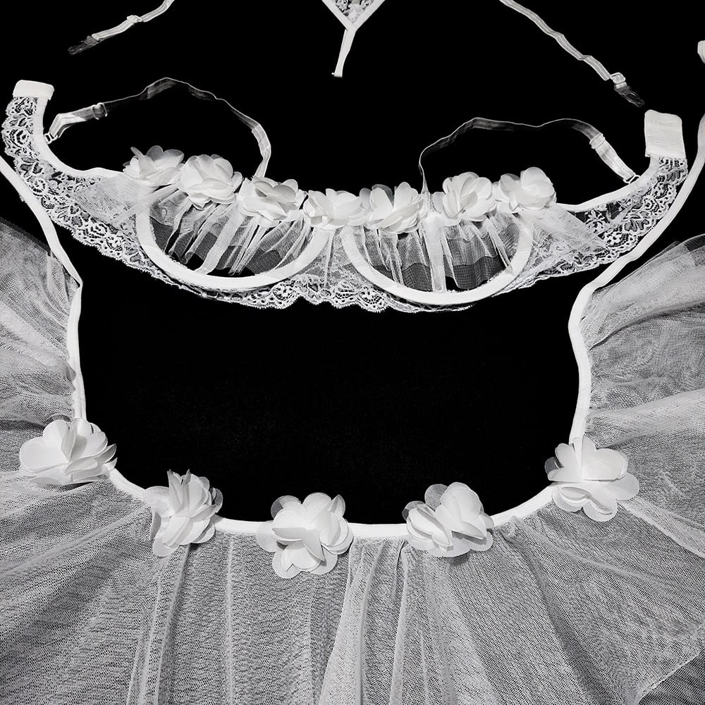 ست عروس فنردار👰♂4 تکه(سوتین/شورت/ دامن/ جوراب)سایز فری 36 تا 42