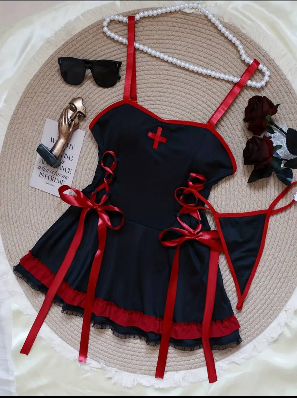 کاستوم پرستاری همراه با شورت و تل سایز لارج مناسب 36تا40 سایز ايکس لارج مناسب 42 تا 44